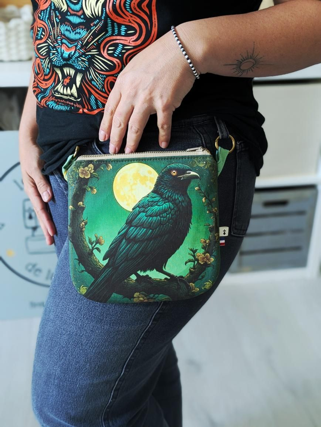 Escarcelle corbeaux fond vert