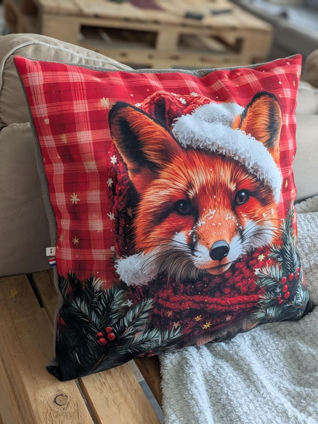 Grand coussin Renard de Noël